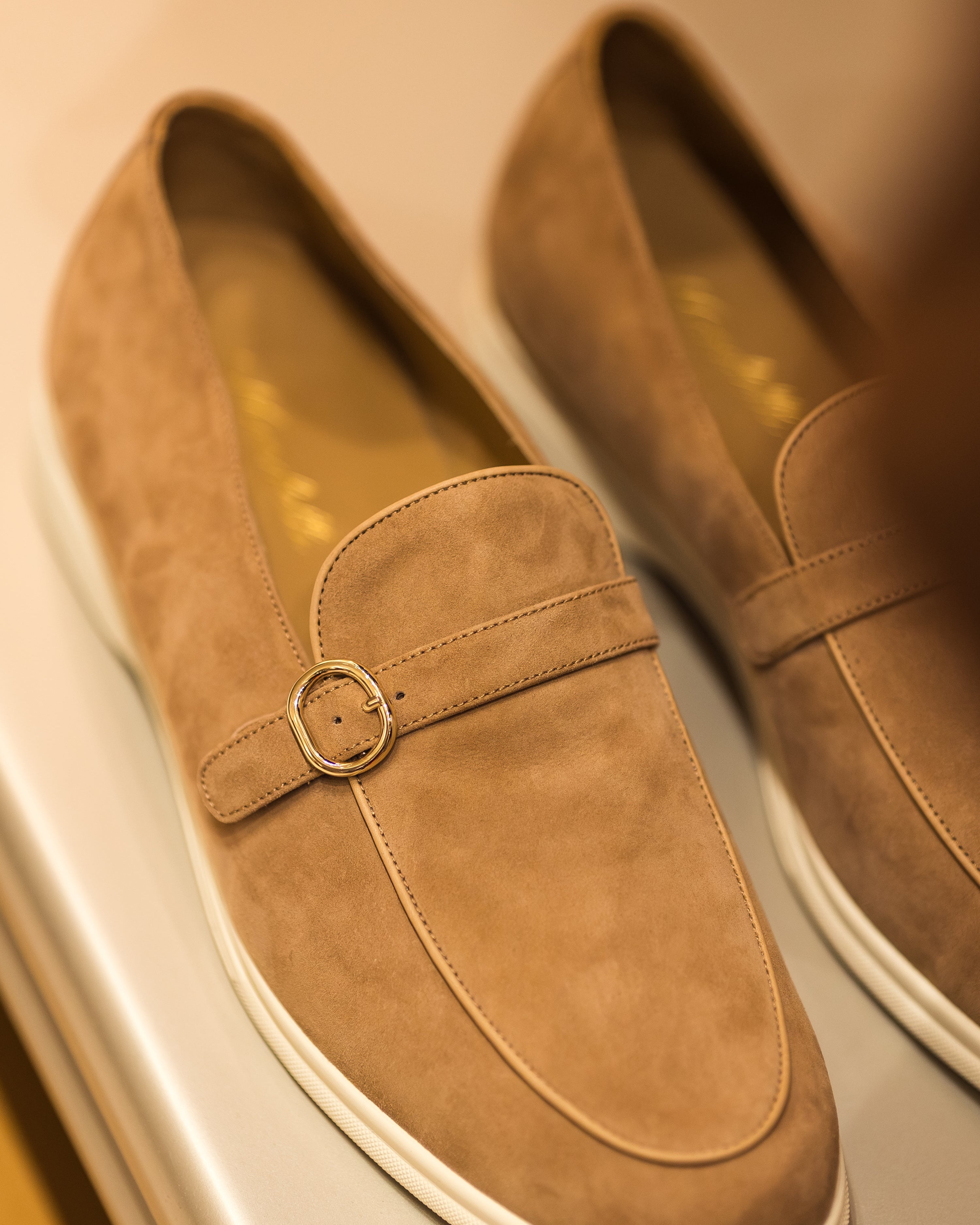 Gold Buckle Suede Loafers